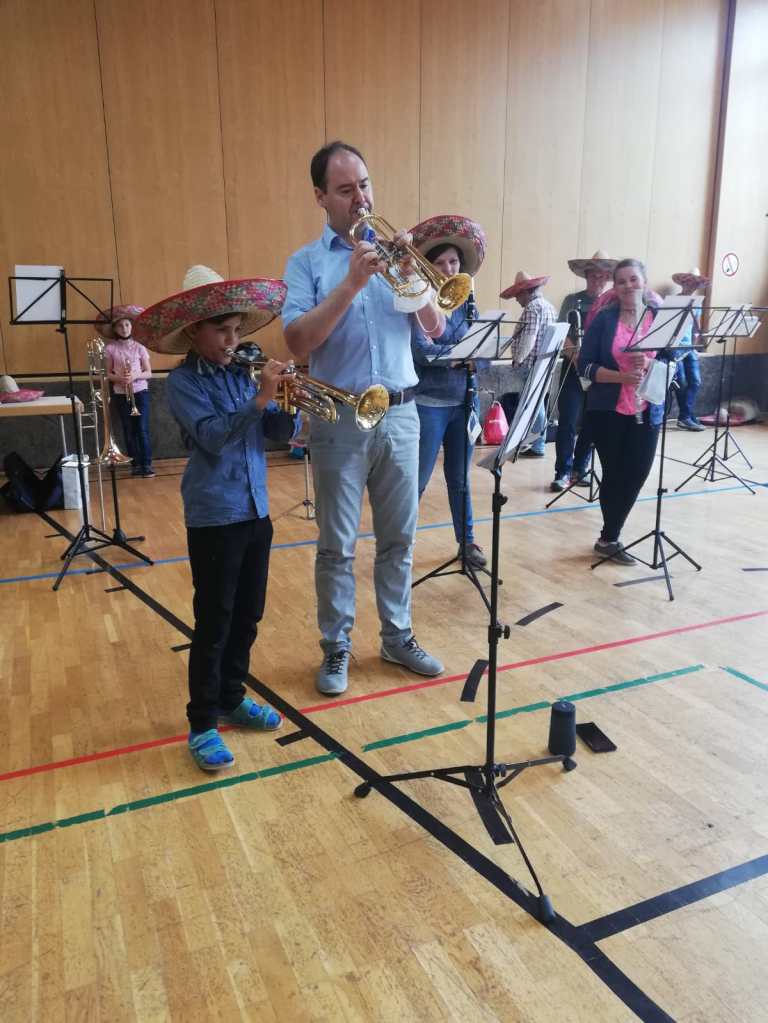 Tatkräftig unterstützt wurden wir von unseren JungmusikerInnen David, Linda, Moritz, Emily, die ihre KlassenkameradInnen persönlich davon überzeugten, dass ihr Instrument das Coolste ist. Wir hoffen natürlich, dass sich ganz viele vom „Musi-Fieber“ anstecken ließen.