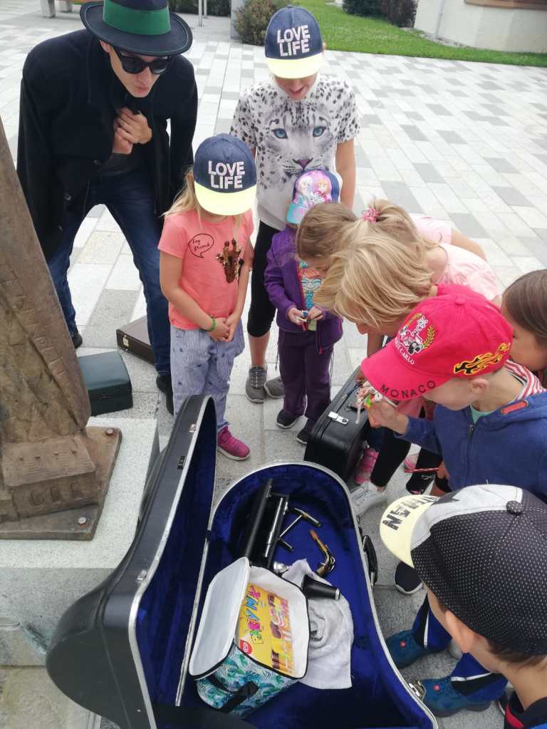 Letzten Mittwoch mussten unsere MusikerInnen entsetzt feststellen, dass die Musik aus dem Musikheim gestohlen wurde – nämlich vom berühmt berüchtigten „Phantom der Blasmusik“. Daher machten sich elf Kinder und Jugendliche aus Waldneukirchen auf, um den Spuren des Phantoms zu folgen und die Musik wieder zu finden. Dabei mussten sie verschiedene Aufgaben lösen: beim größten Instrument Waldneukirchens (der Orgel) spielten sie mit den Boomwhackers dem Phantom ein Geburtstagslied, am Fußballplatz errieten sie kuriose Musiker-Utensilien, bei der Waldkapelle wurden Lieder gegurgelt und beim Nah&Frisch mussten zu Werbejingles die Produkte gesucht werden (danke Gabi für die kleine Stärkung zwischendurch!).