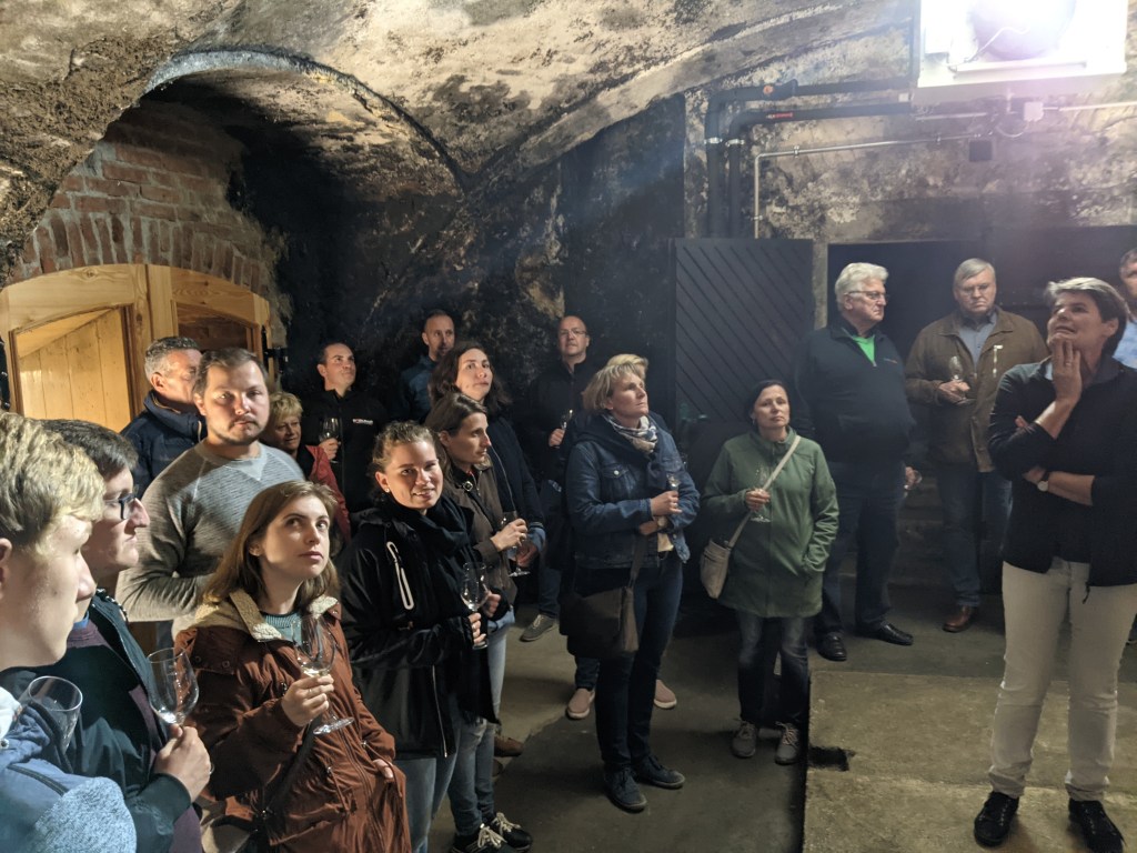 Ein Ersatzprogramm war schnell gefunden: zuerst ging es in die Weinberge zu einem Maroni- und Sturmstand, dann in den Keller der Familie Jöbstl. Nach einer sehr interessanten Führung und Verkostung, von der Anlage eines Weingartens bis zum fertigen Endprodukt, wurde eine deftige Hauer-Jause gereicht und bei viel Gesang, Wein und einer Menge Spaß der Abend verbracht.