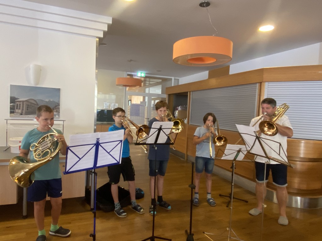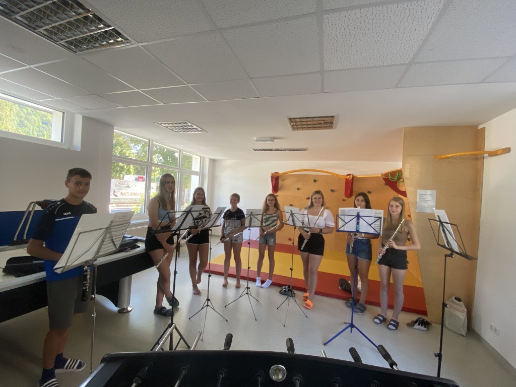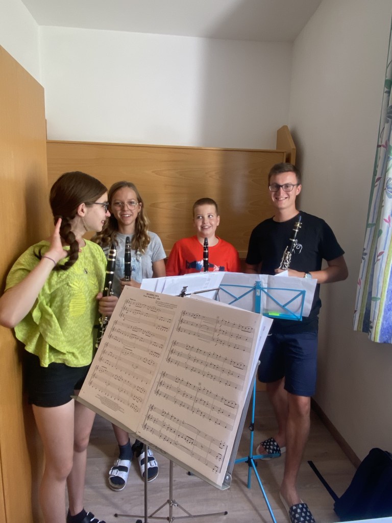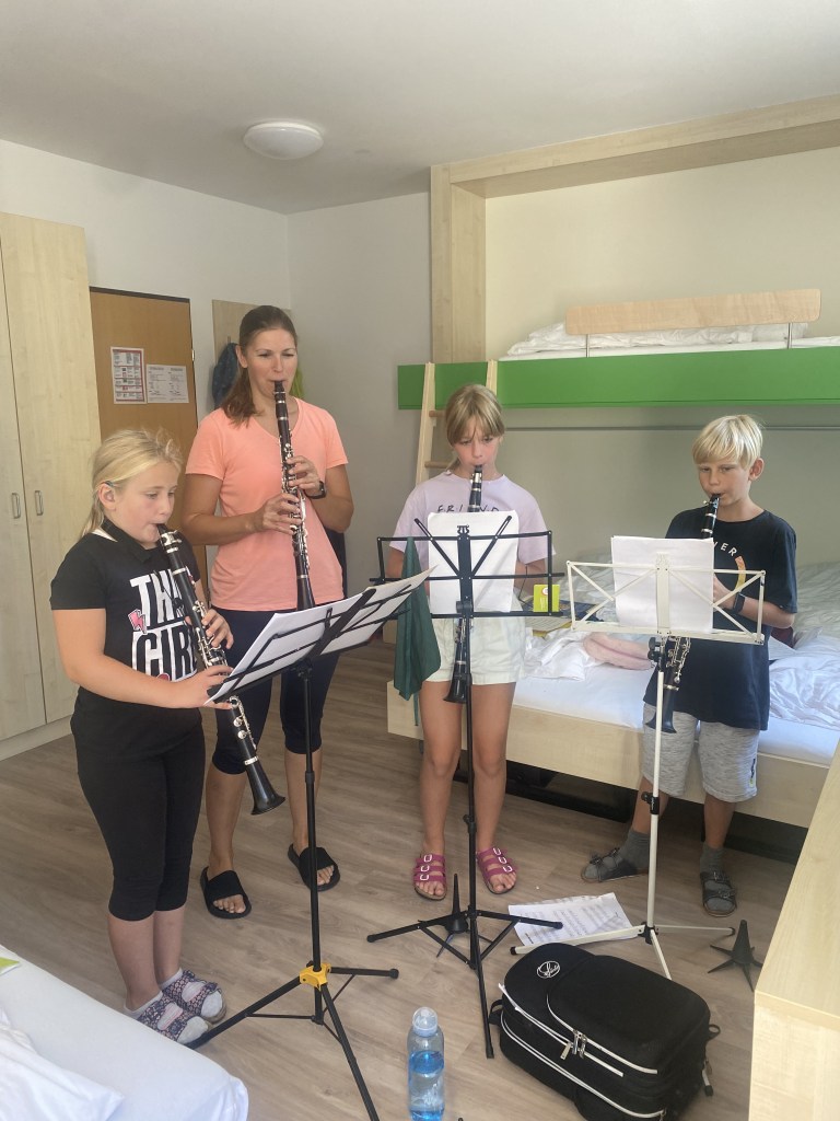 An den Vormittagen wurde fleißig geprobt, einerseits in unterschiedlichsten Ensembles, wie zum Beispiel einer Böhmischen Partie, andererseits auch im großen oder kleinen Orchester. Auch Theorieunterricht stand in verschiedenen Schwierigkeitsstufen am Programm. So hatte jeder und jede ein individuell abgestimmtes Vormittagsprogramm.