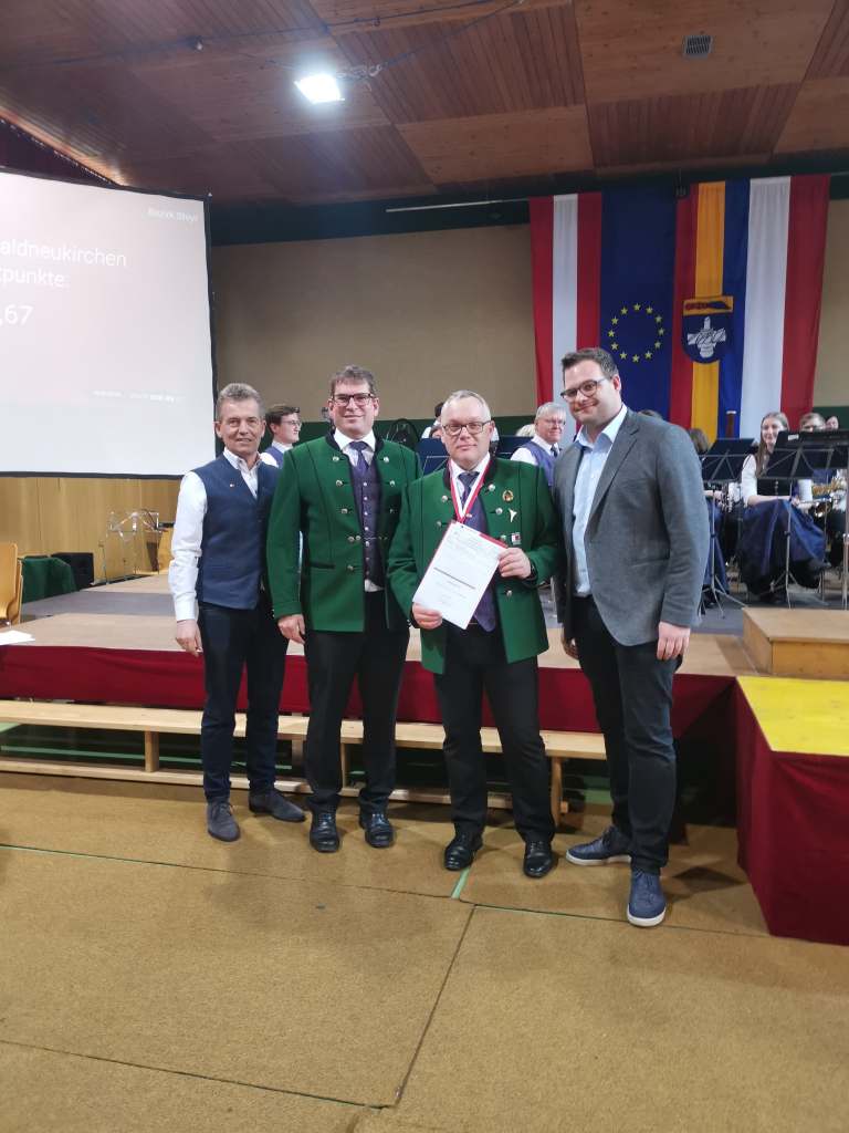 Am 30.04.2024 haben wir an den Bläsertagen in Ternberg teilgenommen. Für die gezeigte Leistung in der Oberstufe C verlieh die Jury an Kapellmeister Alexander Schedlberger und seine MusikerInnen eine Silbermedaille mit 85,67 Punkten. Mit dem Selbstwahlstück „English Folk Song Suite“ (Ralph V. Williams), dem Pflichtstück „The Flight“ (Michael Geißler) und „Everybody needs Somebody“ (arr. Jan van Kraeydonck) wurde ein anspruchsvolles und abwechslungsreiches Programm dargeboten. Diese Möglichkeit, Feedback einzuholen ist Grundstein für unsere weitere musikalische Entwicklung und wir möchten beim nächsten Mal möglichst viel davon umsetzen.
