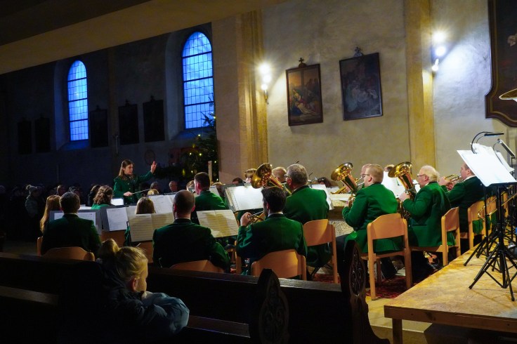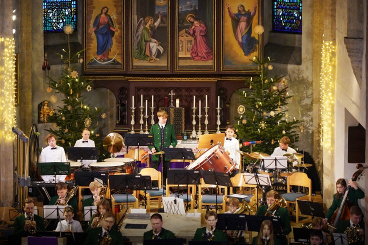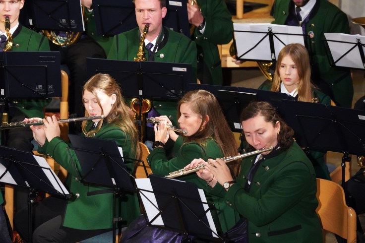 Mit Anna Heinzle-Diwald erstmals als Kapellmeisterin folgte dann eine weitere Premiere. Das abwechslungsreiche Programm wurde von Laura Pöllhuber moderiert, die das Publikum durch den Konzertabend führte. Highlights waren neben der „Alpenländischen Weihnacht“ auch ein Medley aus „Beauty and the Beast“ und „Gabriellas Song“ mit den Solisten Thomas Maderthaner und Stefan Diwald. Ein Blechbläserensemble unter der Leitung von Johann Ömmer sorgte für einen weiteren harmonischen Akzent. Den stimmungsvollen Abschluss bildete „Stille Nacht“.
